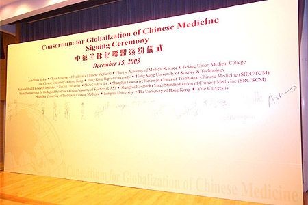 The Consortium for Globalization of Chinese Medicine Signing Ceremony was held on December 14, 2003.